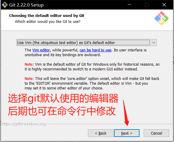 3.选择默认编辑器,安装后也可以在命令行中修改