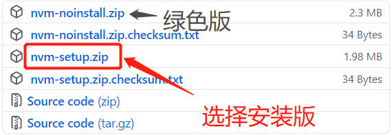 nvm-noinstall.zip:绿色免安装版,但使用时需进行配置。