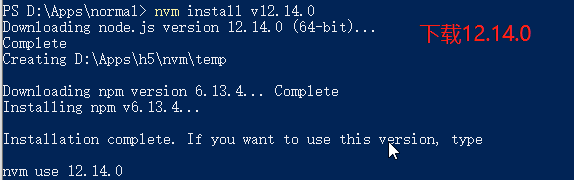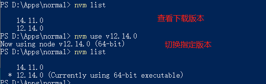 nvm uninstall v12.14.0 # 删除已安装的指定版本,语法与install类似