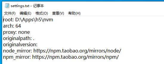 nvm node_mirror https://npm.taobao.org/mirrors/node/ nvm npm_mirror https://npm.taobao.org/mirrors/npm/1